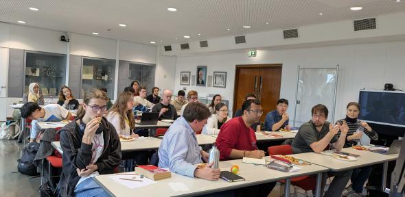 We meet fortnightly for lunch, mostly during term time - talks are given in a hybrid format, but pizza is provided to in person attendants!